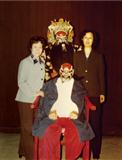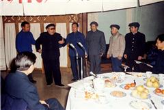 1982年《钟馗嫁妹》录像及演出后侯玉山(前坐者)与儿子侯广有(后排中)、儿媳吴承敏(后排左一)、干孙女白小华(后排右一)合影(吴赣生摄)