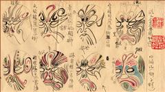 翁偶虹手绘《陷空山·无底洞》脸谱扇面