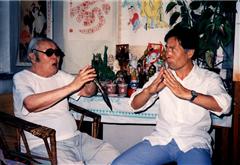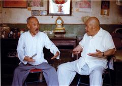 侯玉山、侯喜瑞于侯喜瑞家中探讨京昆艺术(陈家让摄)